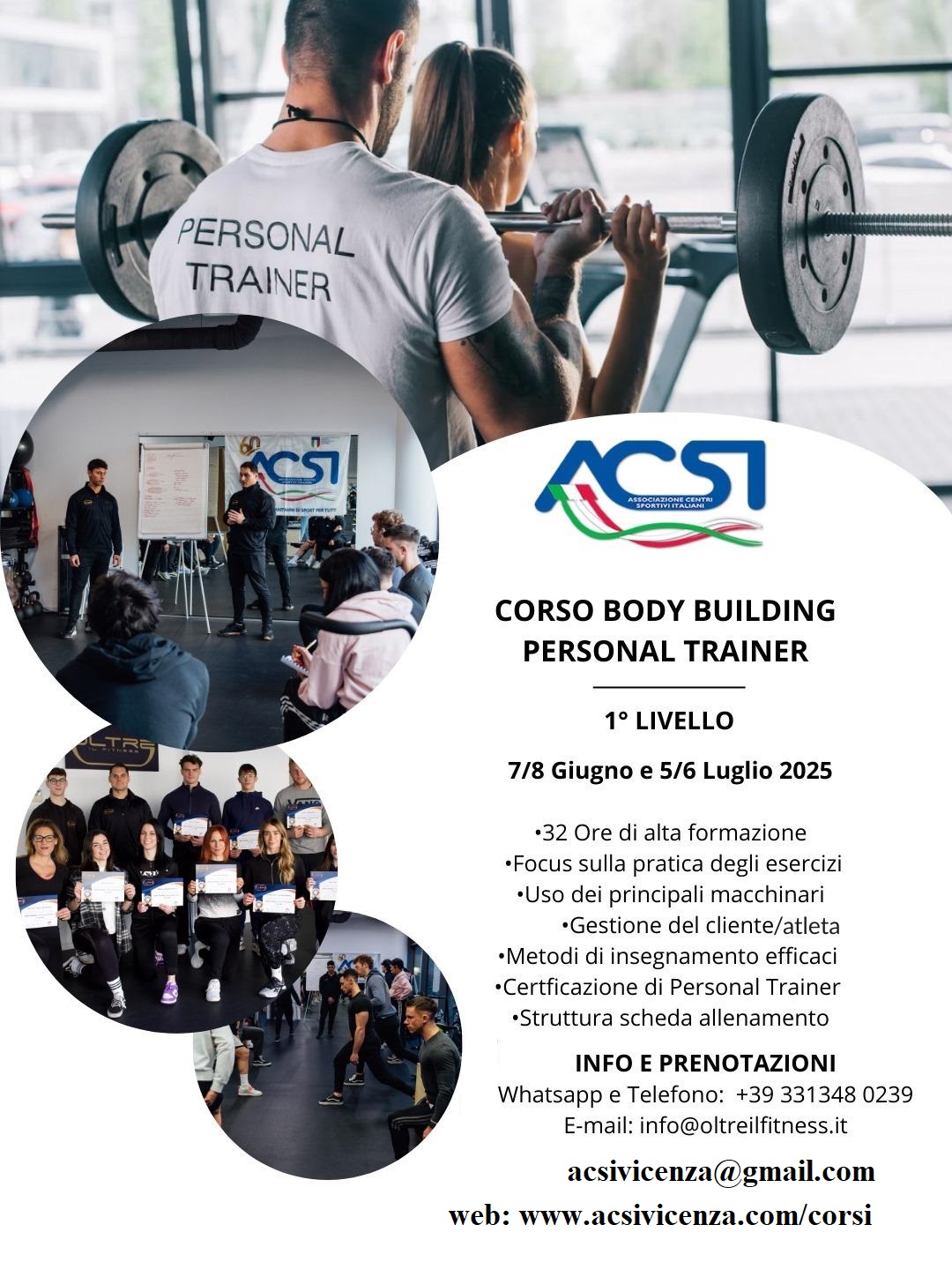 Vi informarvi che sono aperte le iscrizioni per il corso di Body Building e Personal Trainer 1 Liv.